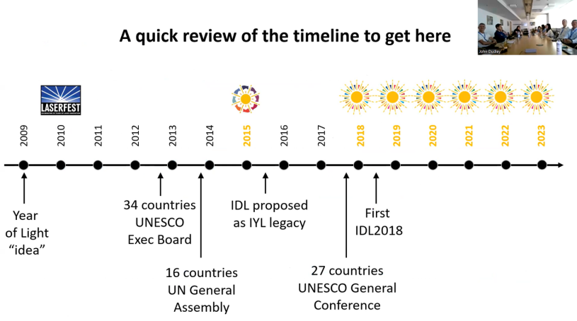6月25日,联合国教科文组织国际光日UNESCO IDL指导委员会STEERING COMMITTEE工作会议于当地时间12:00-13:30(北京时间18:00-19:30)在德国慕尼黑Munich举行。指导委员会成员包括美国物理学会APS、美国光学学会OPTICA、国际光学工程学会SPIE、国际电气和电子工程师协会IEEE、中国光学学会COS、国际照明协会CIE、法国贝桑松大学Université de Franche-Comté、美国照明工程协会IES等机构代表到场出席,欧洲光电产业协会EPIC、施亮国际光与照明实验室&施亮照明科技SCHOLITT线上参会。