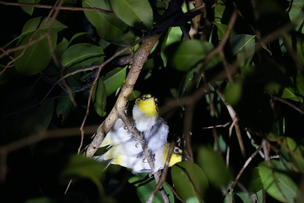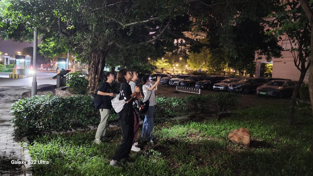 6月19日晚上22:00-24:00,中大翼境社团的八位同学分两组,携红外夜视观测设备,手电、定位仪、相机在目标区域开展夜栖鸟类调查。施亮的两位同事随行观摩。